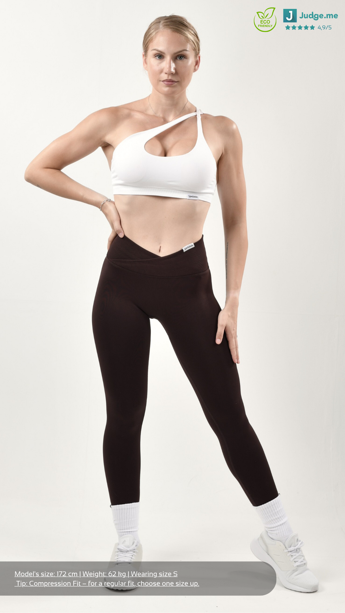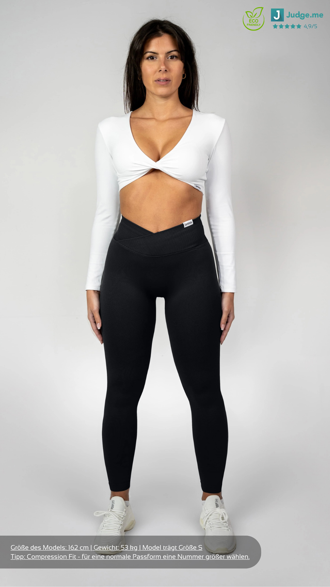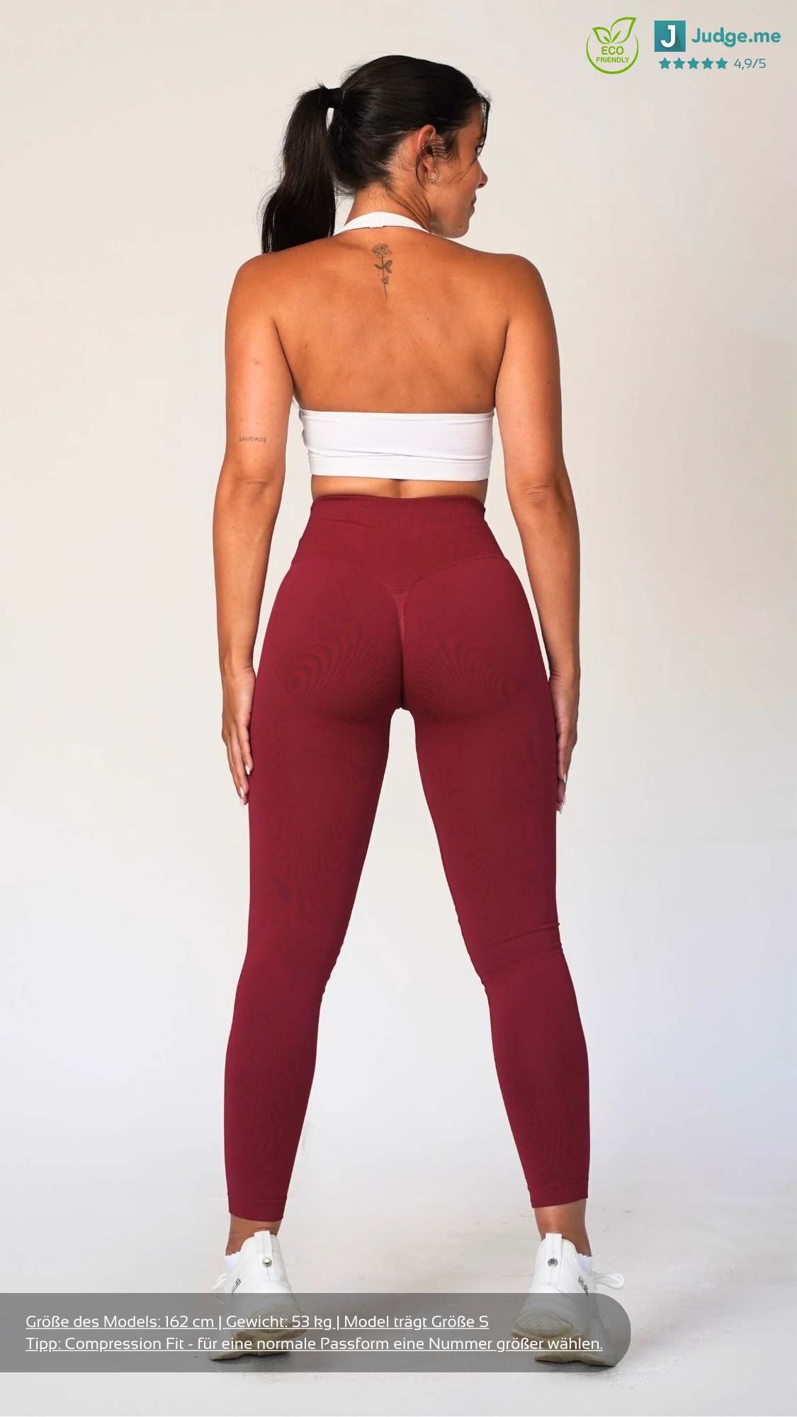 Die V-Shape Leggings besteht aus recycelten Materialien und ist 100% blickdicht und squatproof. Das besondere und einzigartige an den Shorts ist, dass der V-Shape-Bund deine Hüfte besonders definiert sowie deine Taille schmaller wirken lässt. Demzufolge werden deine Kurven optimal betont. Zusätzlich dazu besitzt die Leggings einen Scrunch am hinteren Teil der Leggings, welches deine Kurven den letzten Feinschliff verpasst. Solch eine Leggings, die den V-Shape Bund mit einer Scrunch Naht kombiniert, gab es noch nie! Außerdem ist die Leggings dank des Seamless Materials sehr dehnbar und bequem. Das sportliche und zugleich elegante Design ermöglicht dir ebenfalls, unsere Leggings in der Freizeit oder an einem Rest-Day zu tragen.