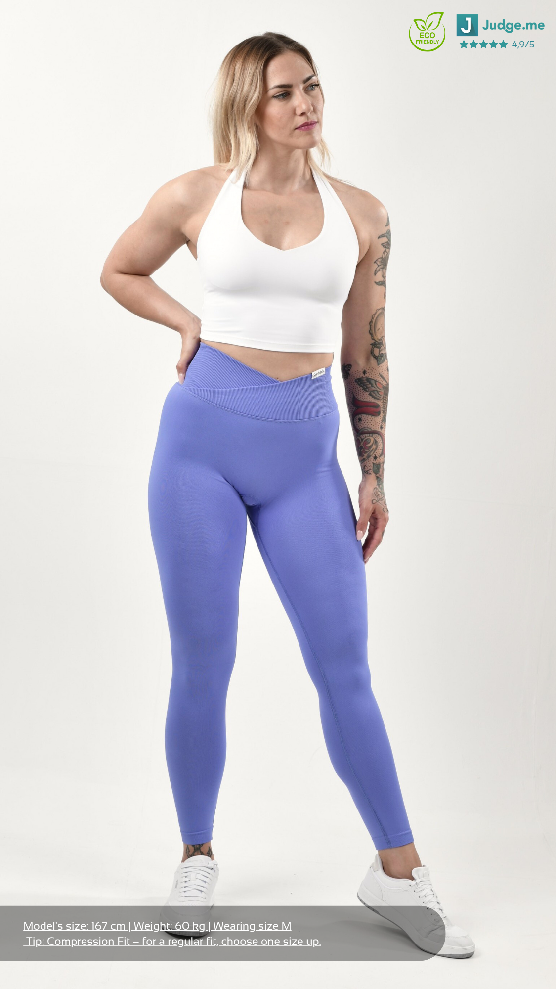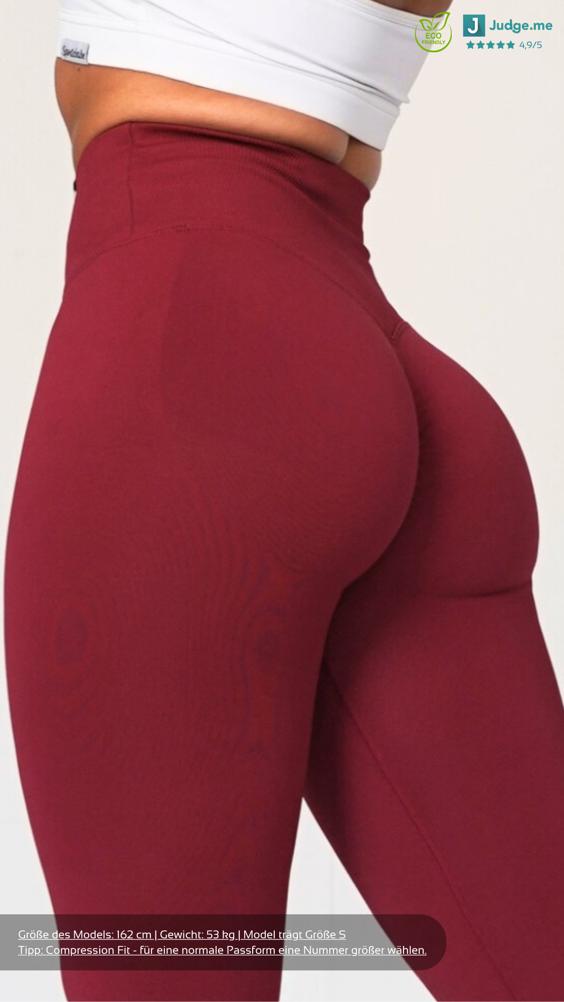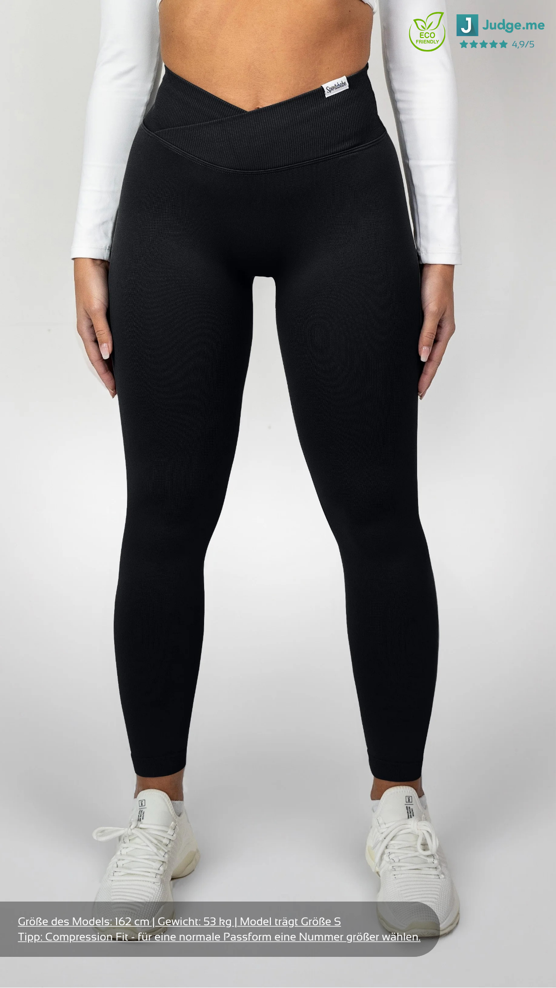 Die V-Shape Leggings besteht aus recycelten Materialien und ist 100% blickdicht und squatproof. Das besondere und einzigartige an den Shorts ist, dass der V-Shape-Bund deine Hüfte besonders definiert sowie deine Taille schmaller wirken lässt. Demzufolge werden deine Kurven optimal betont. Zusätzlich dazu besitzt die Leggings einen Scrunch am hinteren Teil der Leggings, welches deine Kurven den letzten Feinschliff verpasst. Solch eine Leggings, die den V-Shape Bund mit einer Scrunch Naht kombiniert, gab es noch nie! Außerdem ist die Leggings dank des Seamless Materials sehr dehnbar und bequem. Das sportliche und zugleich elegante Design ermöglicht dir ebenfalls, unsere Leggings in der Freizeit oder an einem Rest-Day zu tragen.