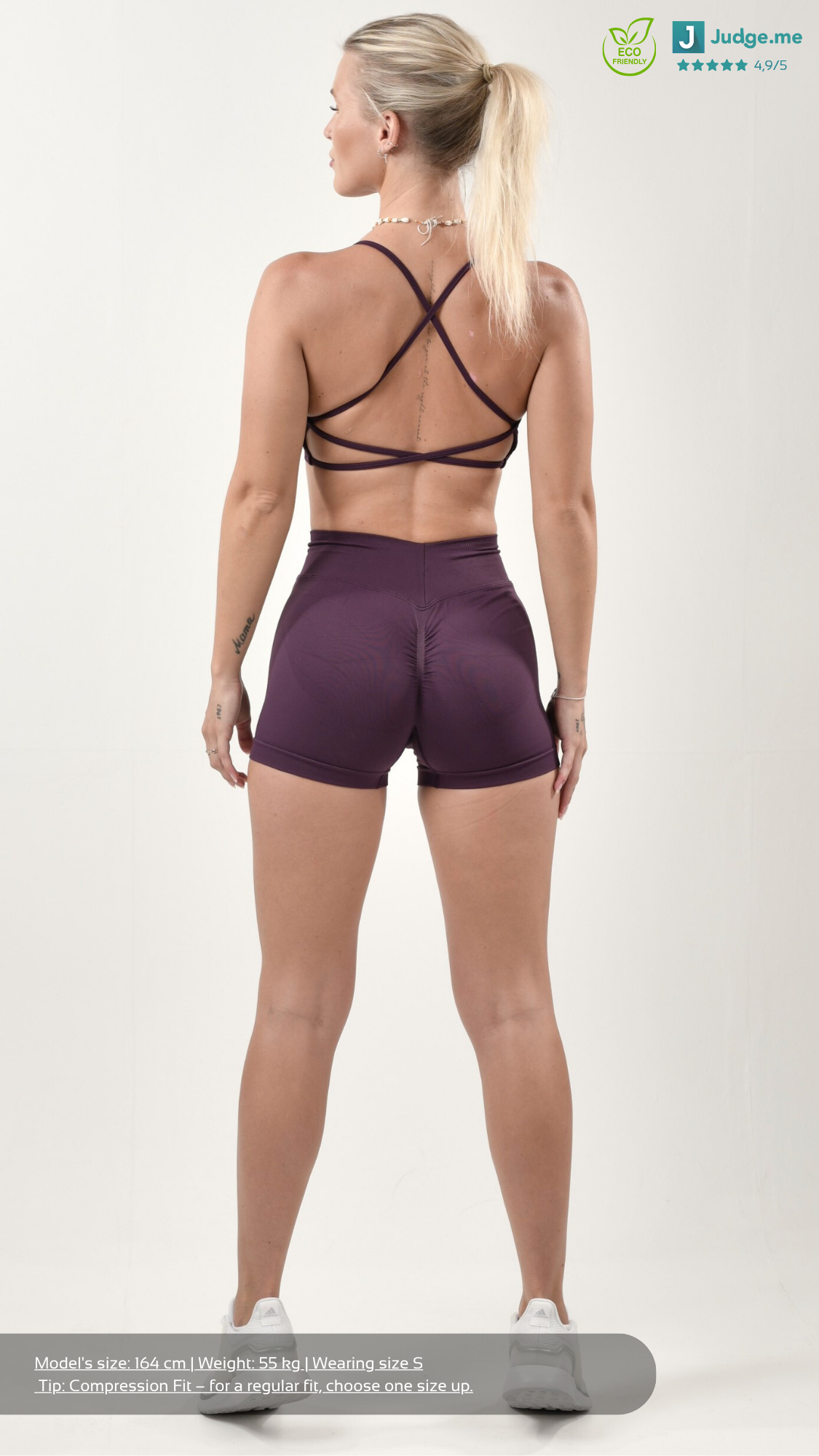 Erlebe Komfort und Stil in Perfektion mit unseren Athletic Wear Shorts. Diese Shorts wurden entwickelt, um dich bei all deinen sportlichen Aktivitäten zu unterstützen und dir gleichzeitig einen trendigen Look zu verleihen. Die Athletic Wear Shorts bestehen aus recycelten Materialien. Der innovativ designte V-Ausschnitt am hinteren Bund hebt Deine Hüften hervor und zaubert eine schmalere Taille, was Deine natürlichen Kurven wunderschön betont. Außerdem ist die Leggings dank des Seamless Materials sehr dehnbar und bequem. Das sportliche und zugleich elegante Design ermöglicht dir ebenfalls, unsere Leggings in der Freizeit oder an einem Rest-Day zu tragen.