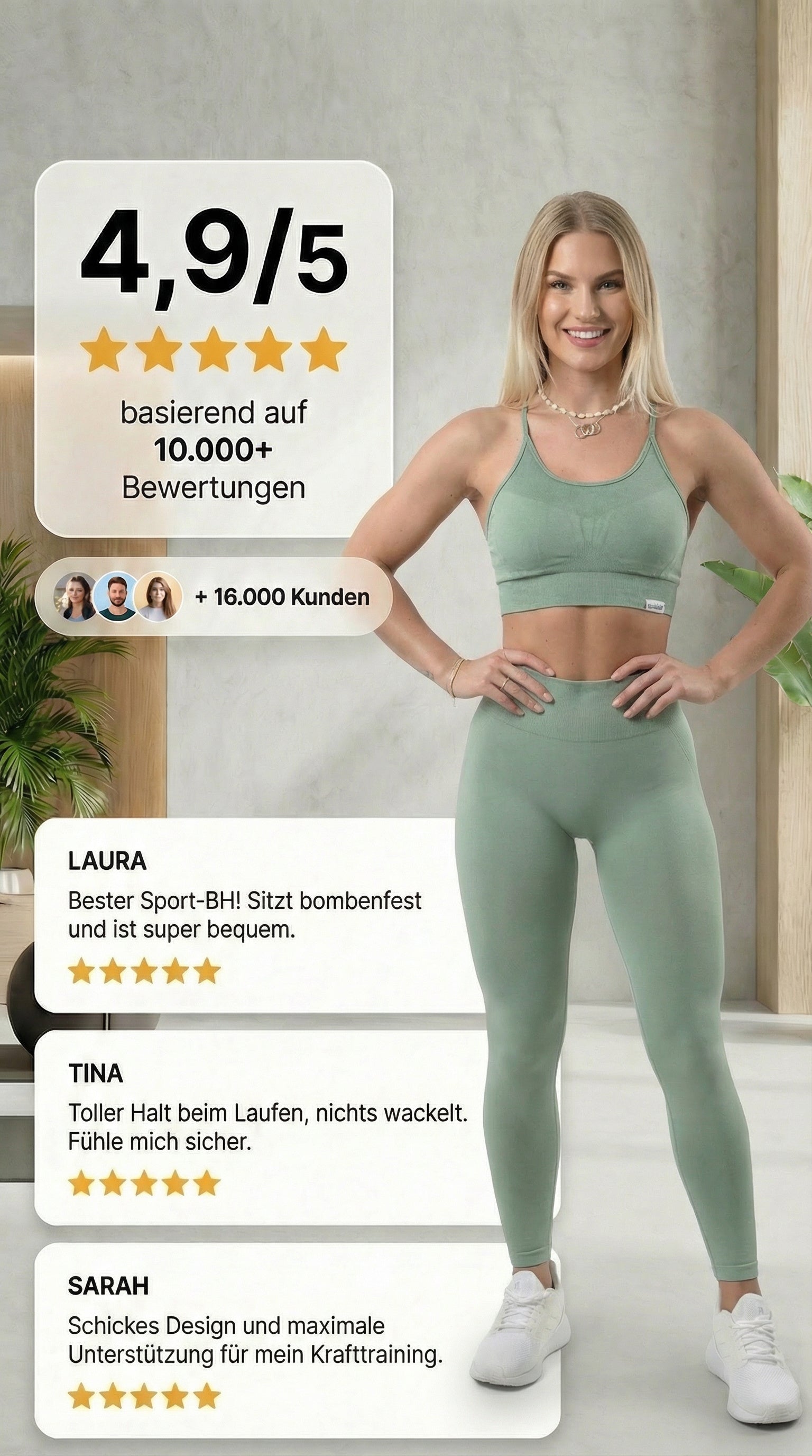 Der Sport BH + Hose passt und sitzt perfekt. Das Tragegefühl ist super angenehm und der überkreuzte Rücken mach Optisch einfach was her! Ich freue mich schon auf meine nächste Bestellung in weiteren tollen Farben!