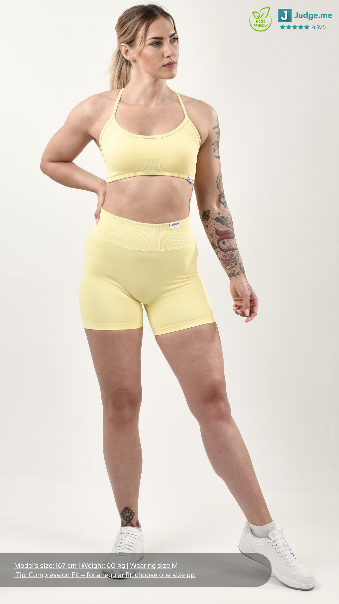 Ich habe mir den Bra und eine Leggings gekauft. Ich bin super zufrieden. Weicher Stoff, die Farben ein Knaller und auch das Desinf lässt sich sehen.