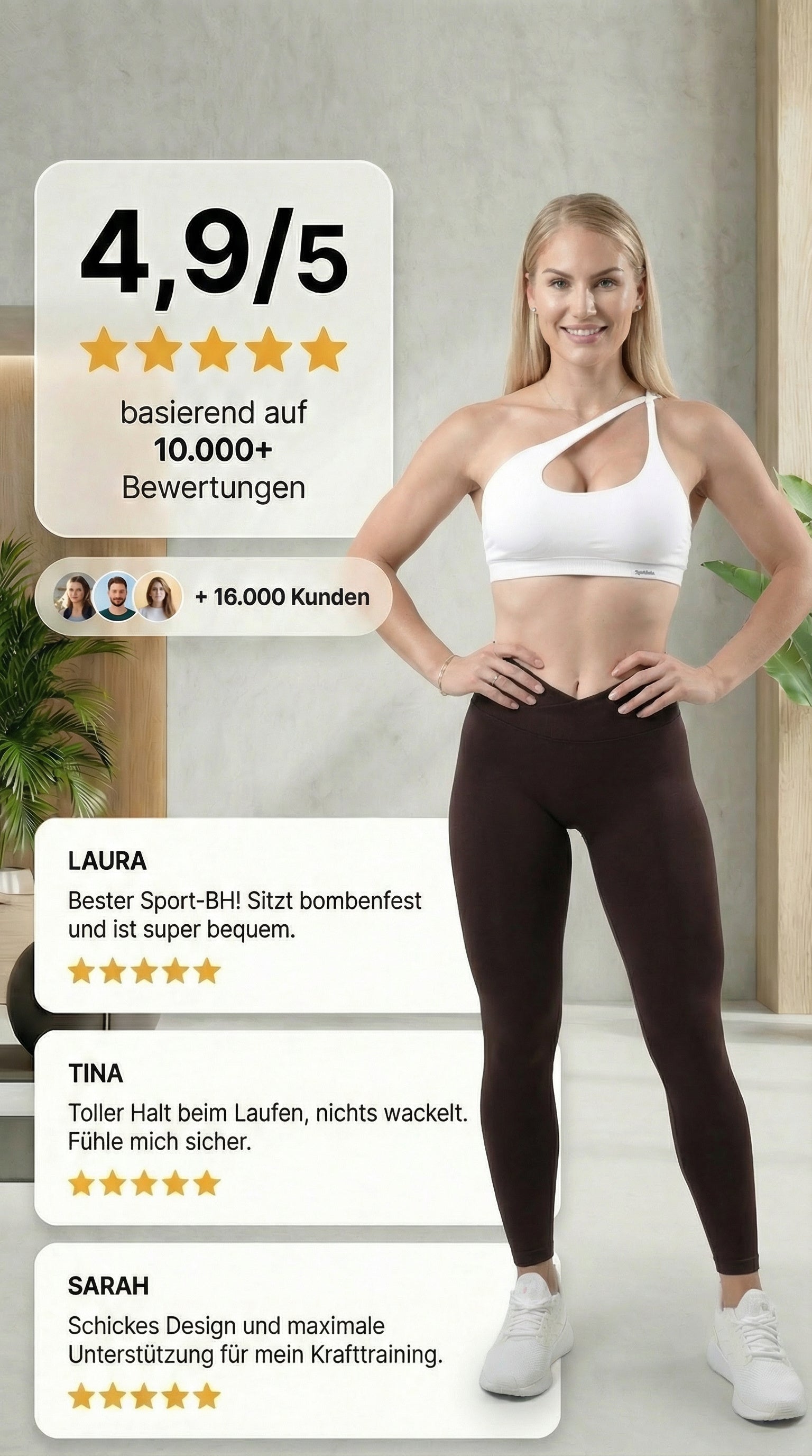 Der Sport BH + Hose passt und sitzt perfekt. Das Tragegefühl ist super angenehm und der überkreuzte Rücken mach Optisch einfach was her! Ich freue mich schon auf meine nächste Bestellung in weiteren tollen Farben!