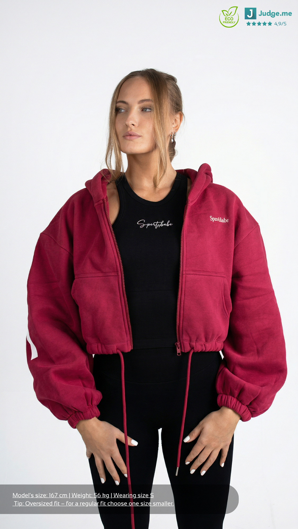 Unsere Oversized Zipper vereinen Komfort, Stil und Funktionalität. Hergestellt aus Baumwolle bieten sie ein angenehmes Tragegefühl und optimale Atmungsaktivität. Das markante "Sportsbabe" Aufdruck auf der Rückseite verleiht dem Look eine extra Portion Coolness. Mit einem Schnürzug am Bund kann die Passform individuell angepasst werden. Diese Jacke ist nicht nur super stylish, sondern auch aus hochwertigem Material gefertigt, das Langlebigkeit und Tragekomfort garantiert. Ideal für den Sport oder als lässiges Statement-Piece im Alltag.