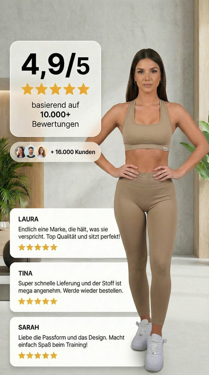 Am besten kombinierst du die Athletic Wear Leggings mit einem passenden Sports-Bra aus unserer Kollektionen. Erhältlich sind die Sets in vielen verschiedenen Farben.
