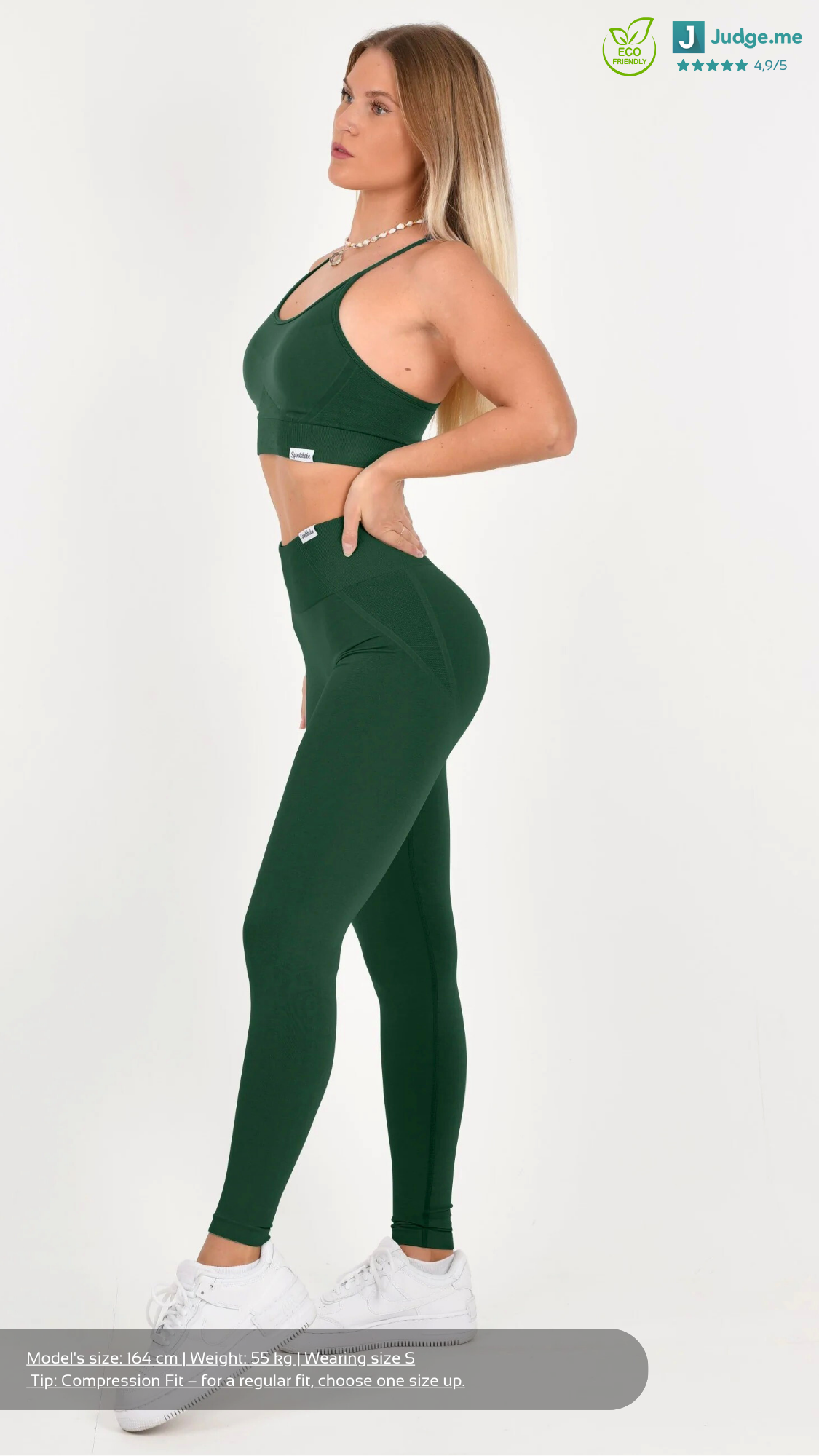 Am besten kombinierst du die Green Leggings mit dem passenden Green Sport-Bra aus unserer Kollektion. Erhältlich sind die Sets in vielen verschiedenen Farben.