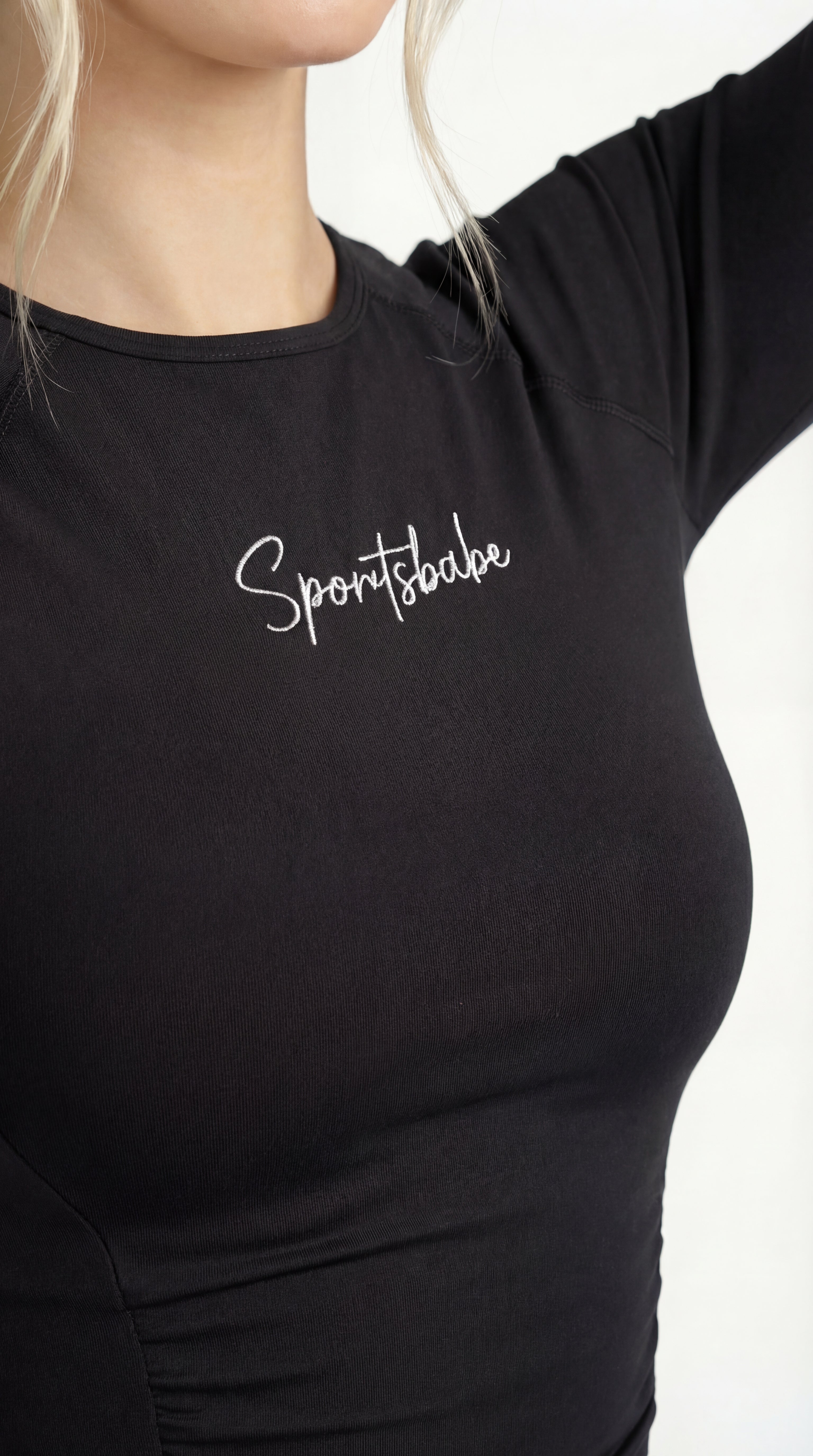 - Dezentes Sportsbabe Logo als hochwertiger Wärme-Transferdruck